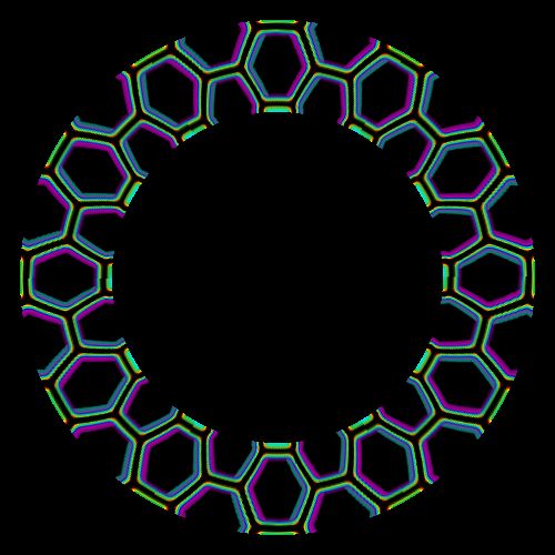 Hexagons. Multi-color. Anaglyph'd and zoomed.