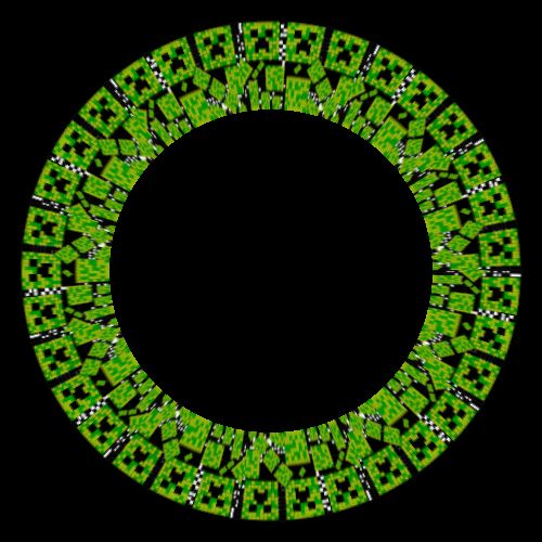 exploding creeper body parts swirling around the middle