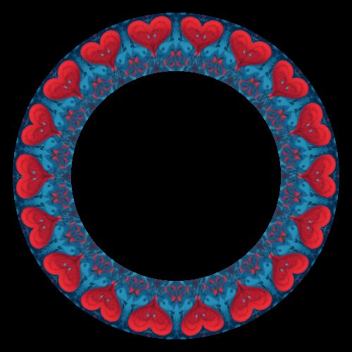 Two red hearts surrounded by intristic ornaments.